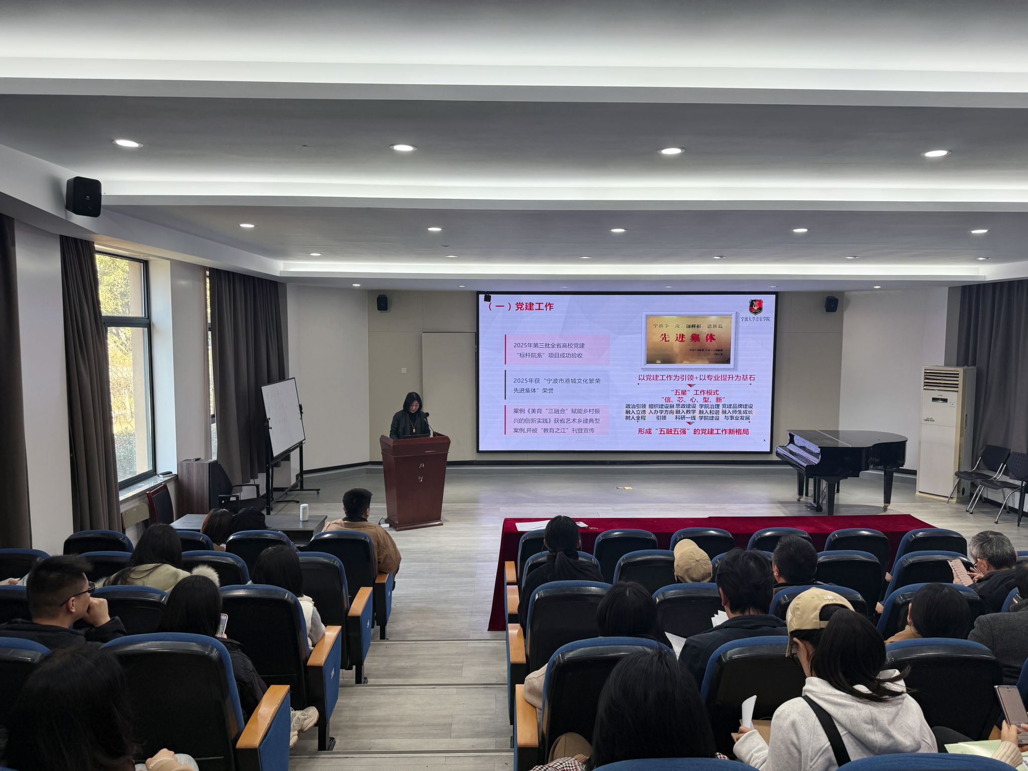 2026年1月14日下午,在拉斯维加斯娱乐城 101阶梯教室举行了拉斯维加斯娱乐城 述职大会暨全院教职工大会。院党委书记孔晓虹做了2025年拉斯维加斯娱乐城 工作述职报告,并对拉斯维加斯娱乐城 未来发展规划,拉斯维加斯娱乐城 目标任务,教师工作等方面提出要求。副院长王蕾,刘畅分别就教学、教师教学、科研、研究生工作方面进行了工作总结,并提出新学期工作要求。实验室负责教师就琴房使用等实验室违规行为进行了通报。最后孔书记进行总结,希望全体教职员工在假期,不懈怠不放松,深刻反思,为新学期各项工作做好充分准备!