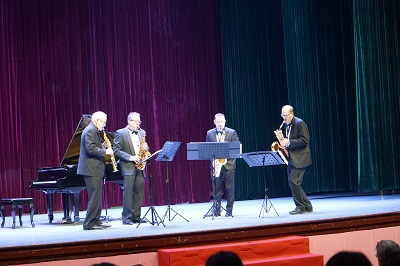 当晚,安朵涅特·佩里教授、爱德华·沃兰因教授携手Encore萨克斯四重奏乐团在林杏琴会堂为师生们献上了《G小调小赋格曲》、《探戈》-终曲、《克里蒂斯》节选、《波吉与贝丝》节选等节目,其翩翩的风度和精湛的演奏技巧,征服了在场的所有观众。
