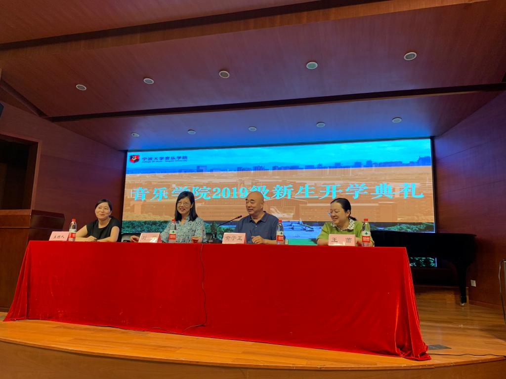 2019级新生开学典礼在西区小音乐厅顺利举行,院长俞子正、院党总支书记刘缨、副院长王蕾出席,院学工办主任于丽丽主持。