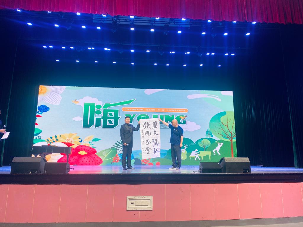 本次音乐会,由杨子健、叶雪莹带来婉转动听的《看山看水看中国》歌曲中拉开帷幕。此后,周晓雯、孔杨君带来钢琴独奏《无锡景》、《六月》引得观众入情入景。四重唱《我的太阳》与《缆车》两首歌曲旋律激昂,感情奔放。李世纪、贺好合唱的《请放心吧祖国》充满了希望与正能量。杨宇娜独唱的《我怎样去爱你》,极具感染力的歌喉将观众带入到故事情节之中。民乐类节目《梦里水乡》、《梁祝》使得观众如临其境。杨子健独唱《老师我想你》抒发了对母校及老师的无限思念。17级本科生班原创歌曲《今年夏天》表达了学子对母院感谢与不舍。音乐会在气势恢弘的合唱《歌唱祖国》中落下帷幕。歌曲真挚动听,不禁让人感叹“时间都去哪了”。院长俞子正教授更是现场送给毕业生由自己亲笔题写的墨宝,引得现场掌声连连。音乐会在动听的歌声中圆满结束。