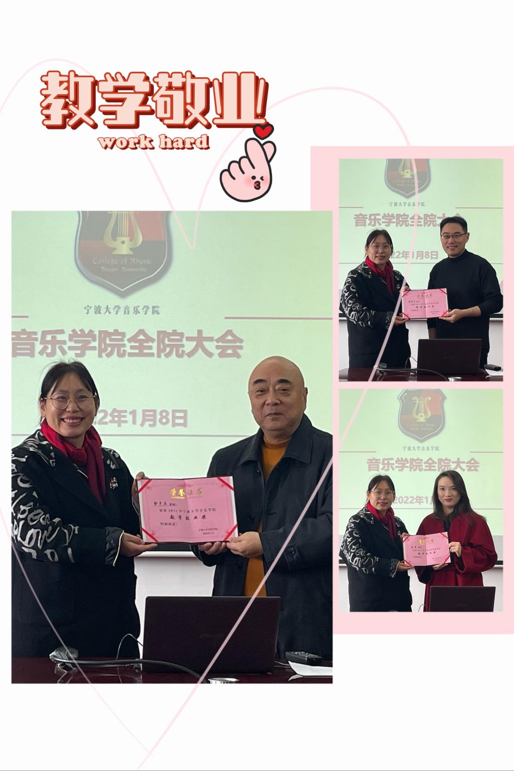 所获各级荣誉的教师进行表彰,并对2021年度“科研卓越奖”、“教学敬业奖”、“艺术风采奖”“最佳奉献奖”“新人幸福奖”“先锋模范奖”“园丁耕耘奖”进行现场颁奖。