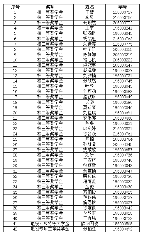 专项工作小组评审,现将2021-2022学年校级奖学金拟推荐名单公示,具体名单见下。