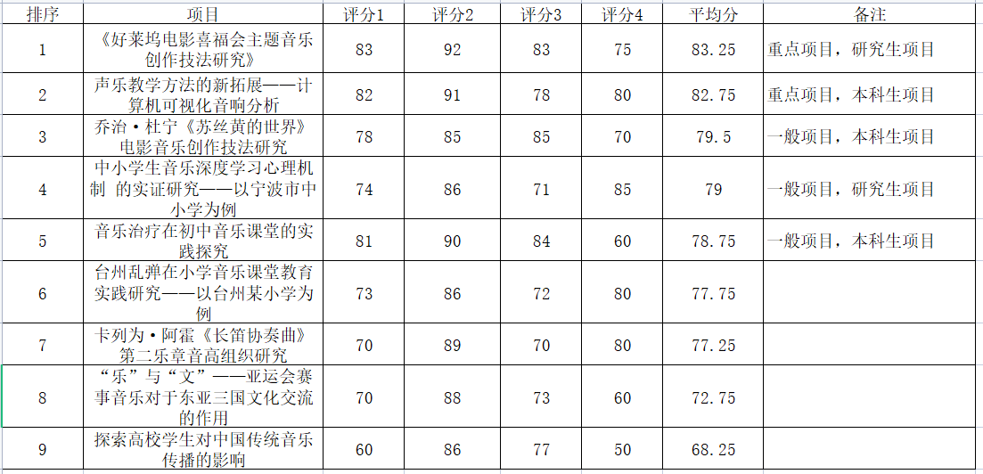 共有9个项目提交申请,经专家评议,拟推荐“好莱坞电影喜福会主题音乐创作技法研究”、“声乐教学方法的新拓展——计算机可视化音响分析”项目为拉斯维加斯城网
