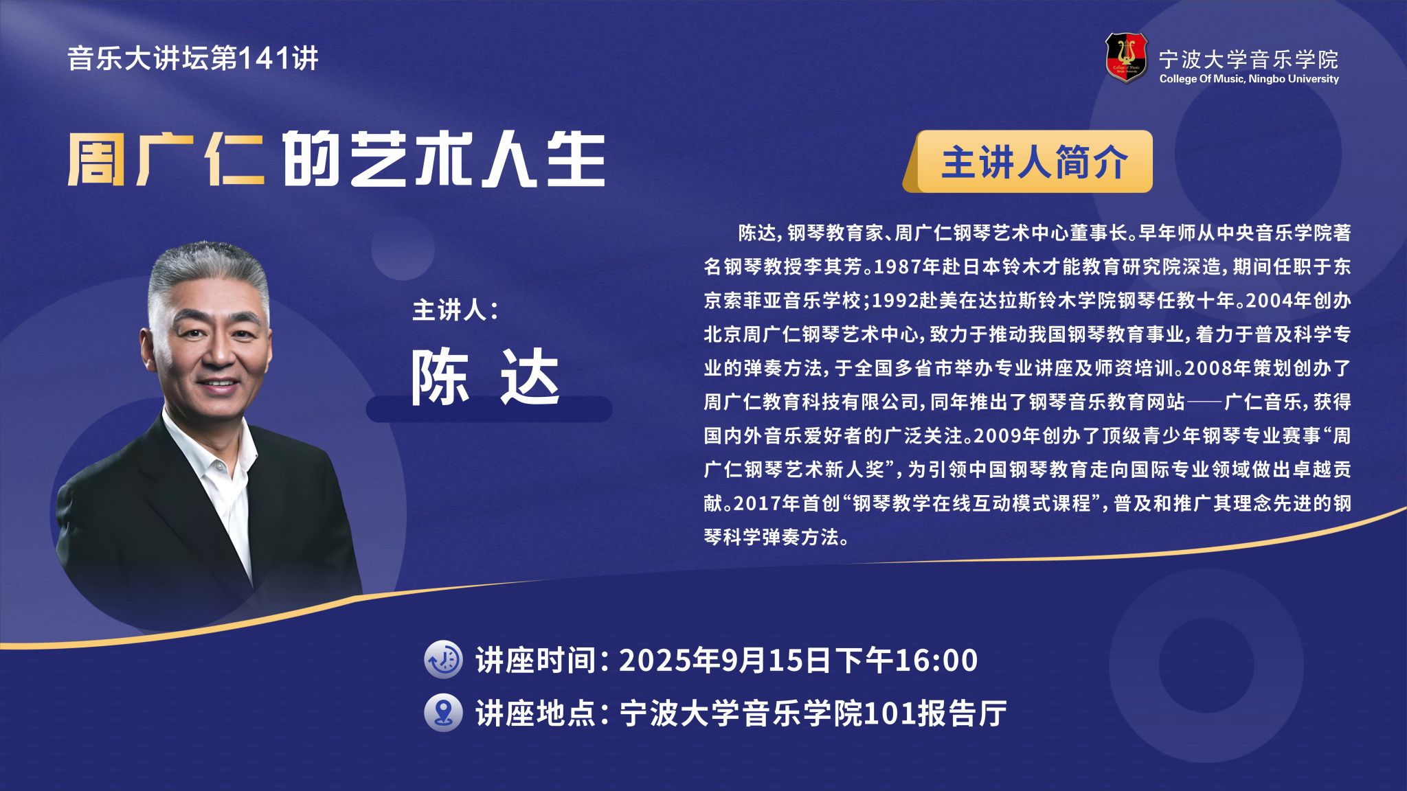 邀请钢琴教育家、周广仁钢琴艺术中心董事长陈达做客音乐大讲坛第141讲,为拉斯维加斯城网