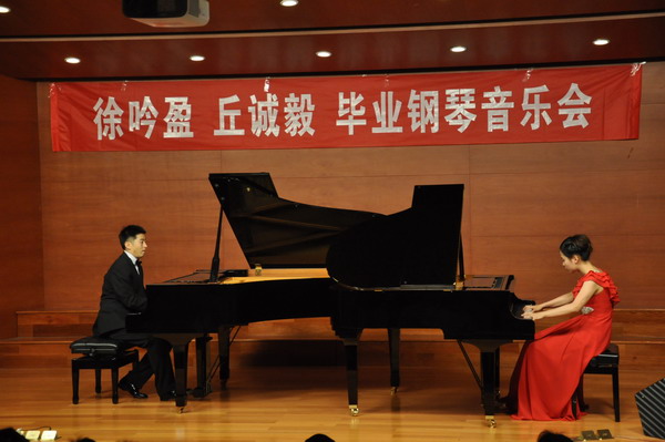 音乐系2012届毕业生徐吟盈、丘诚毅钢琴音乐会在西校区小音乐厅举行。院长喻辉、院党委书记袁虹、院党委副书记叶春桥以及部分专业教师和百余位音乐爱好者观看了演出。