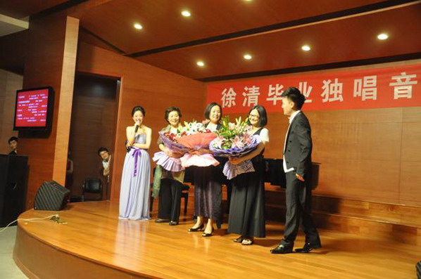 音乐会最后,在观众热烈的掌声中,徐清又返场演唱了意大利名曲《请你别忘了我》,以感谢现场热情的观众。同时,徐清还请上了胡晓平、孙悦湄、叶金玫三位老师,并一一献花表达自己对老师的感恩之情。浓浓的师生情,弥漫在音乐会的舞台上,让人为之动容。