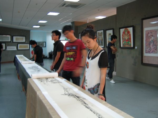11级美术大类的学生也参观了展览,还就美术学专业的美术教育和数字艺术设计等专业方向的相关问题进行了咨询,美术系教师在专业特色、培养目标、课程安排等方面给他们作了详尽的介绍。