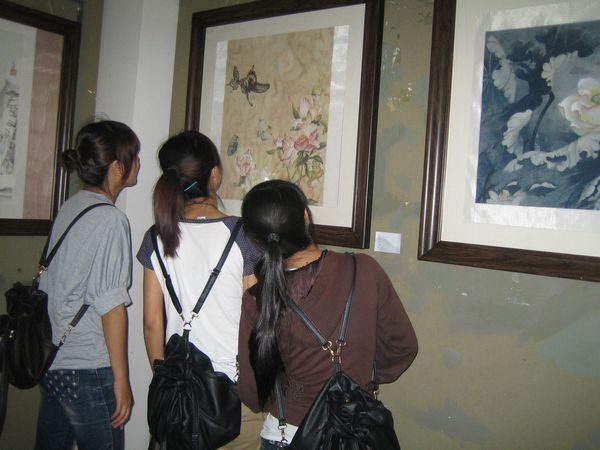 本次展览的参展作品为09、10级美术学专业学生的平时作业,有国画、油画、书法、电脑美术、民间艺术、平面设计等。国画主要以传统的山水画和花鸟画为主,山水画有手卷长达数米,令观者赞叹。工笔花鸟画有荷花如出水芙蓉等,色彩富丽堂皇,线条细腻有力。工艺设计作品视觉效果显著,设计想象力丰富,民间剪纸艺术和仿蜡染花布非常有特色。只要你到了展厅,就能感受到艺术殿堂的音符在环绕着你……