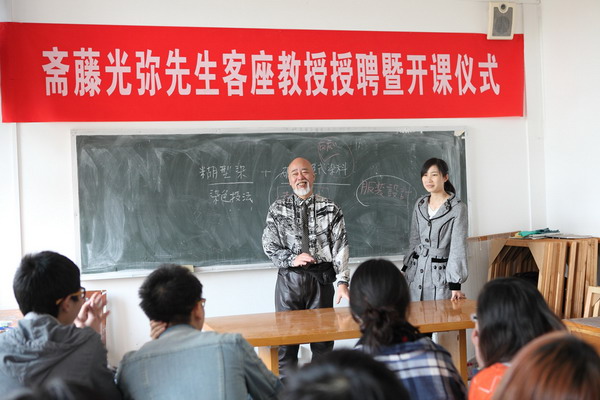 讲座开始前,院长喻辉为斋藤光弥先生颁发了“客座教授”荣誉聘书。(徐时程)
