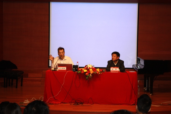 跨学科艺术研究所学生的作品,同时还介绍了自己的电子音乐作品以及与视觉艺术家的合作情况。不论是对自己的创作还是对学生的培养,莱纳德教授都强调跨学科、跨国界、跨文化合作与交流的重要性。讲座过程中,他不但进行口头阐述,而且现场播放相关影音资料,使得讲座绘声绘影、丰富多彩,也使在场师生受益匪浅。最后,讲座在莱纳德教授演奏的美妙悠扬的萨克斯风中圆满结束。(魏艳萍)