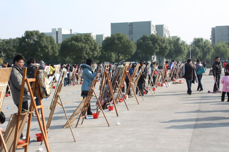 的参赛选手们用自己的一双巧手书画着属于自己的青春活力,心有灵犀的校园情侣们尽情展示着彼此的默契。活动的志愿者们也尽职尽责,服务选手和观众热情的为选手们递送颜料和画笔为他们扶起被风刮倒的画板画架,为观众们提供选票以及引导,他们的无私付出是本次活动成功的不竭动力。
