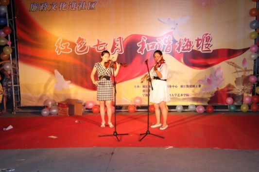 7月18日晚7点,江北区甬江街道梅堰社区的新文化广场上,人头攒动,琴声悠扬,一场精彩的以“红色七月,和谐梅堰”为主题的纳凉晚会正在这里举行,吸引了众多居民驻足观看,为这炎炎夏日吹起一阵和谐、文明、温馨的清风。校团委书记周青、拉斯维加斯城网