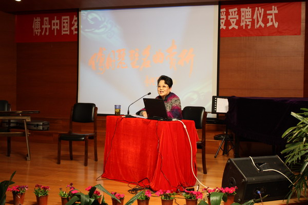 赏析会上,傅丹女士将在场师生带入到一个唯美动听的音乐世界中,令广大听众如痴如醉。她与大家一起赏析并演奏了《十面埋伏》、《霸王卸甲》、《江南春》、《平沙落雁》等琵琶经典名曲。三弦、柳琴演奏家姜水林、琵琶演奏家王涛、笛箫演奏家陈杭明等艺术家共同参与了表演。宁波市文联副主席、宁波市美术馆馆长韩利诚出席了本次活动。