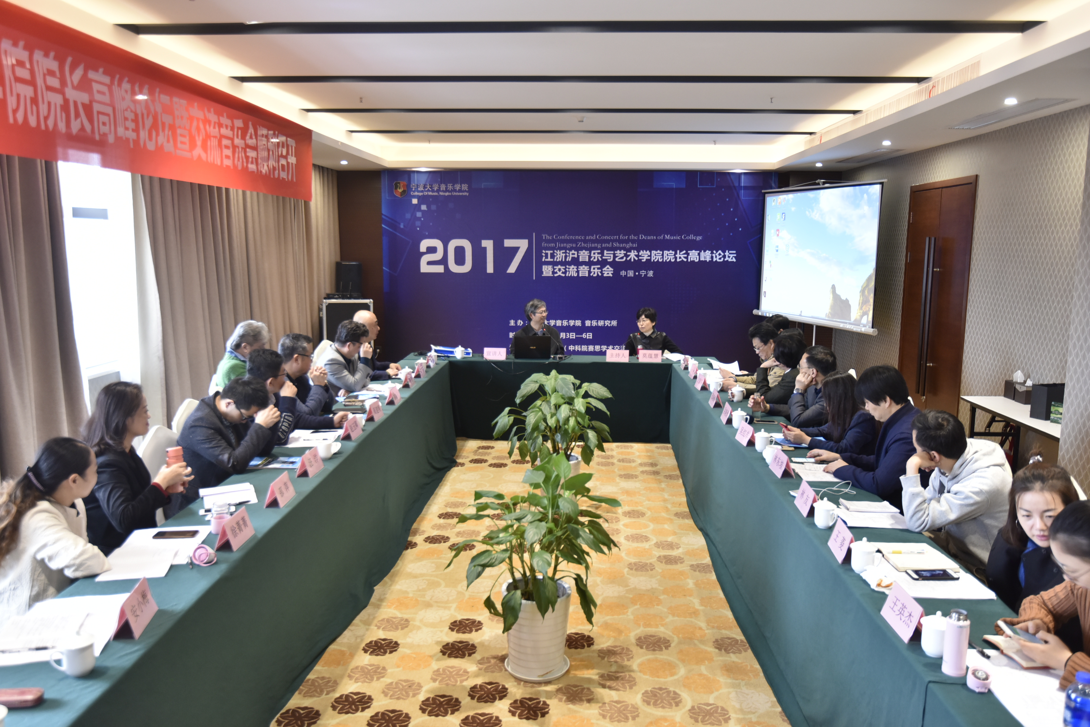 院长高峰论坛暨交流音乐会,于2017年11月3日到6日在中科院赛思学术交流中心隆重召开。本次会议立足中国高等音乐教育发展现状,对双一流背景下音乐与舞蹈学一级学科与艺术硕士专业学位的建设发展、江浙沪三地高等音乐教育校际合作、资源共享等联动发展的新模式问题进行了深入的学术探讨。
