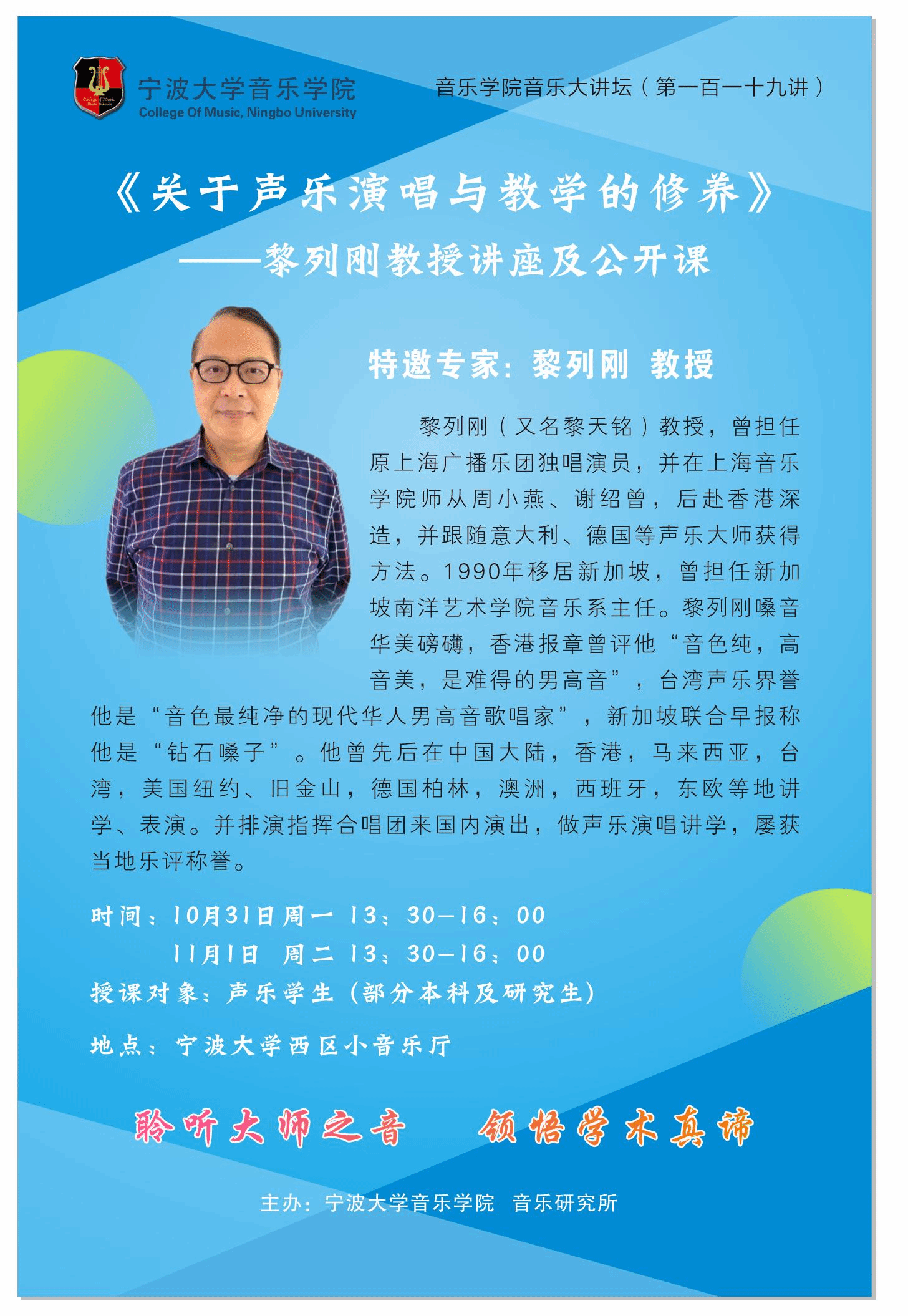 讲座题目:关于声乐演唱与教学的修养