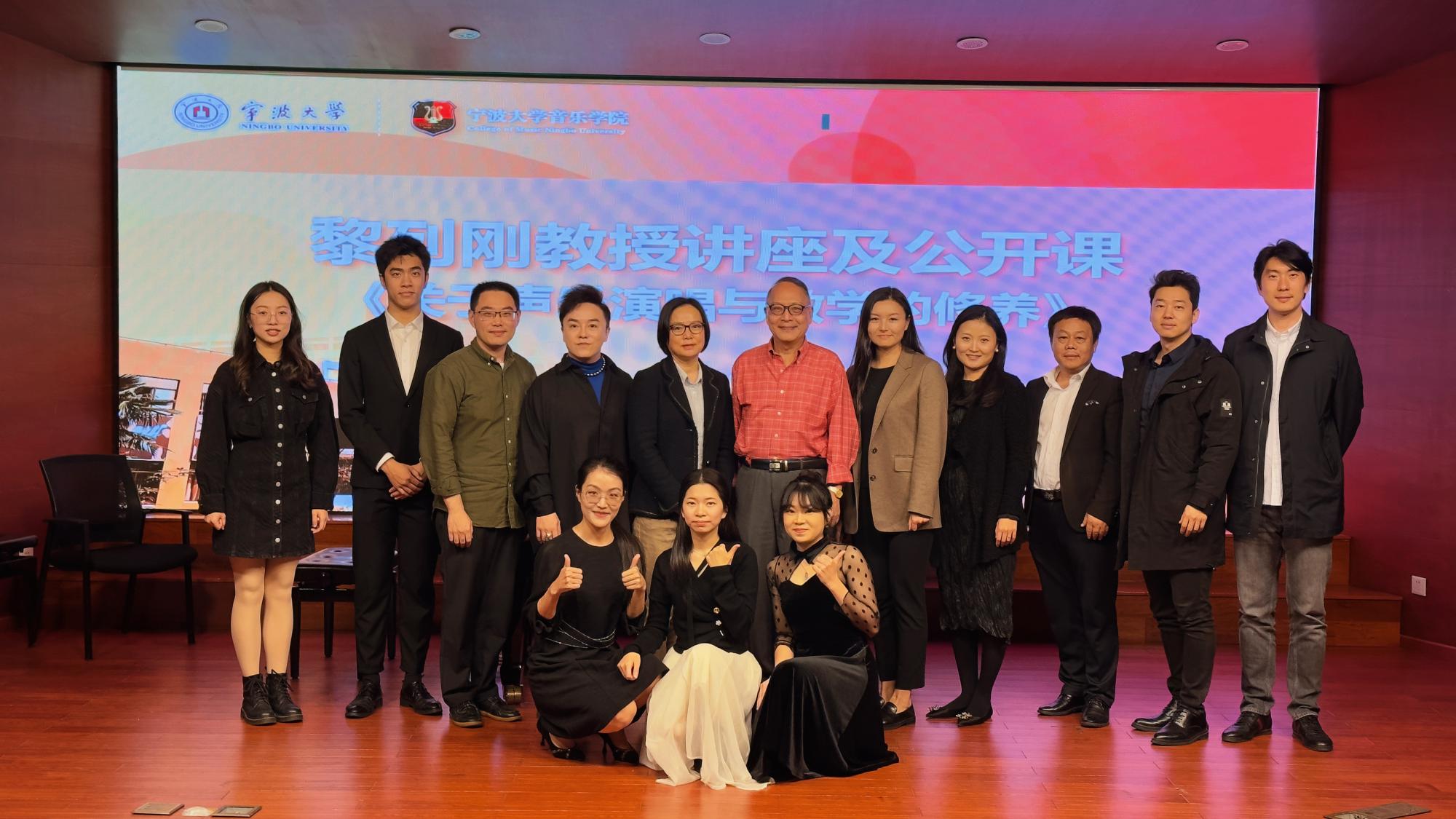 进行了题为《关于声乐演唱与教学的修养》的学术讲座。讲座内容从“咬字要规范、把歌唱气息变成平时生活的常态、把高位置的发声作为生活的常态、关于歌唱的意境”四个方面与师生们分享了自己的艺术实践与理论所获,并于师生们进行了问答的互动交流。公开课环节中,黎教授耐心细致地对四位本科、四位研究生从歌唱语言、发声技巧、艺术表达等方面进行了悉心指导。