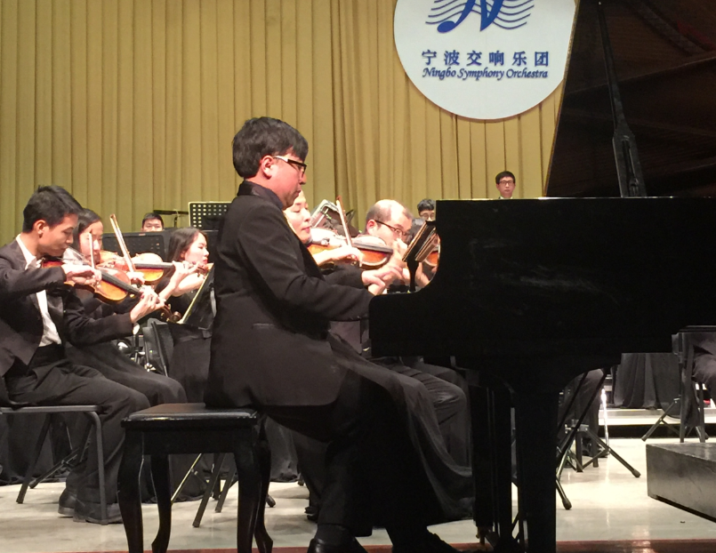 的钢琴专业教师、青年旅美钢琴家孙铭澧博士与乐团演绎的拉赫玛尼诺夫“钢琴协奏曲第二首之第一乐章中板”可谓激情澎湃。在返场演出中,Erlenbach指挥宁波交响乐团表演了肆意挥洒的哈恰图良的“马刀舞曲”。