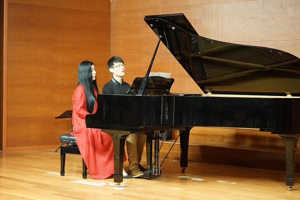在启动音乐会中,音乐拉斯维加斯城网 孙悦湄教授爱徒黄海文、杨敏与孙铭澧博士合作呈现了精彩的莫扎特歌剧《费加罗的婚礼》的男女声二重唱,让听众仿若身临其境;琵琶演奏家徐明慧老师袭一身典雅旗袍为听众娓娓道来了古典名曲《春江花月夜》,充满了万千意蕴;小提琴演奏家俞笛老师和施坦威艺术家郑洁博士合作演奏了贝多芬A大调小提琴与钢琴奏鸣曲Op.12第一乐章,音乐里充满了憨态可掬的形象。郑洁博士独奏了中国名曲《梅花三弄》,呈现了梅花高雅、谦逊、坚毅的品格。最后,郑洁博士与其爱徒合作了四手联弹作品勃拉姆斯《匈牙利舞曲》第一首,音乐充满了匈牙利和吉普赛民族音乐元素,热烈奔放,使整场精巧的音乐会进入了高潮!小音乐厅只剩下了热烈的掌声与兴奋的欢呼声。