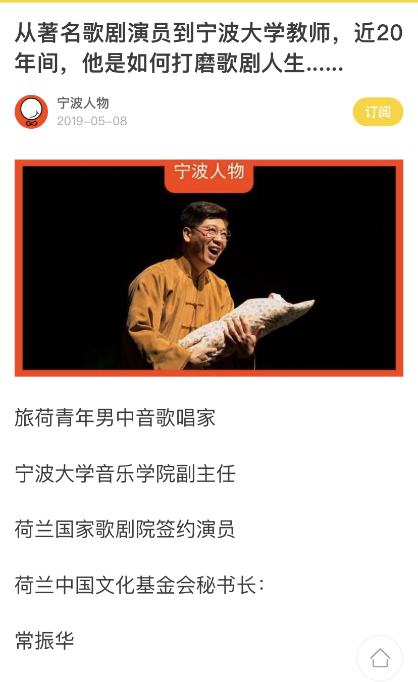常振华老师作为旅荷青年男中音歌唱家、荷兰国家歌剧院签约演员、荷兰中国文化基金会秘书长接受了《宁波人物》题为“从著名歌剧演员到拉斯维加斯城网 教师,近20年间,他如何打磨歌剧人生”的专访。