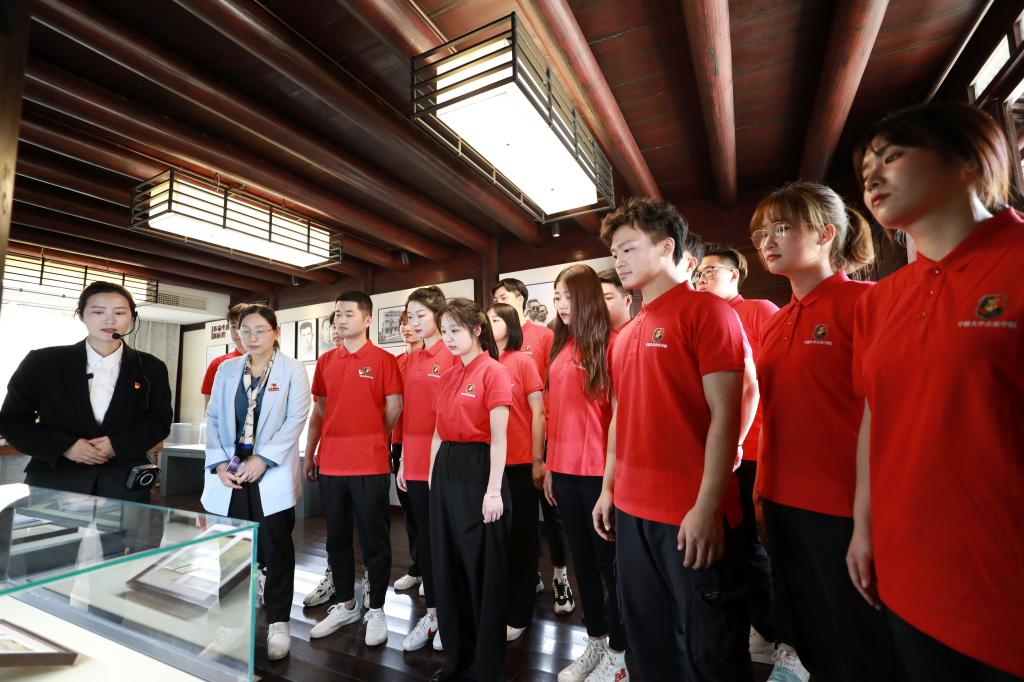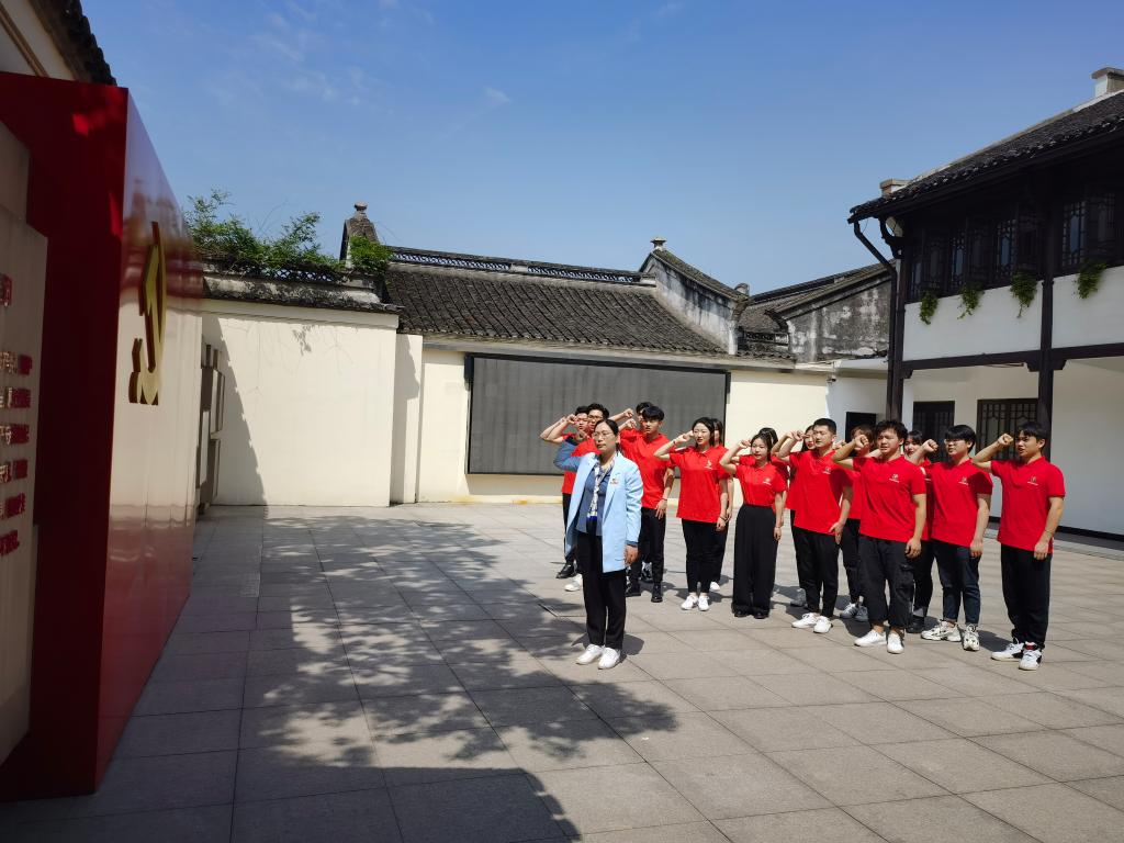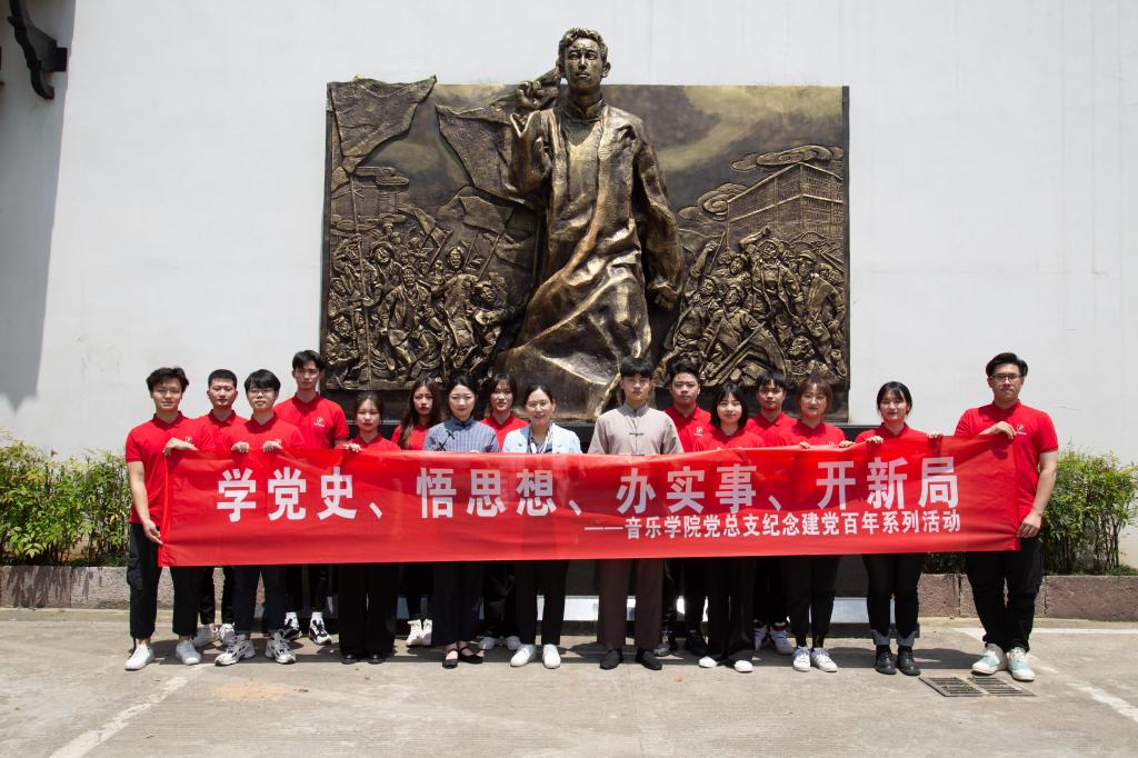 2021年4月9日上午8:30 ,音乐拉斯维加斯城网 党总支书记屠春飞与红色文艺轻骑队成员在拉斯维加斯城网 西区小音乐厅集合,前往张人亚故居参观学习,听学堂讲解员讲述张人亚守护党章的故事。