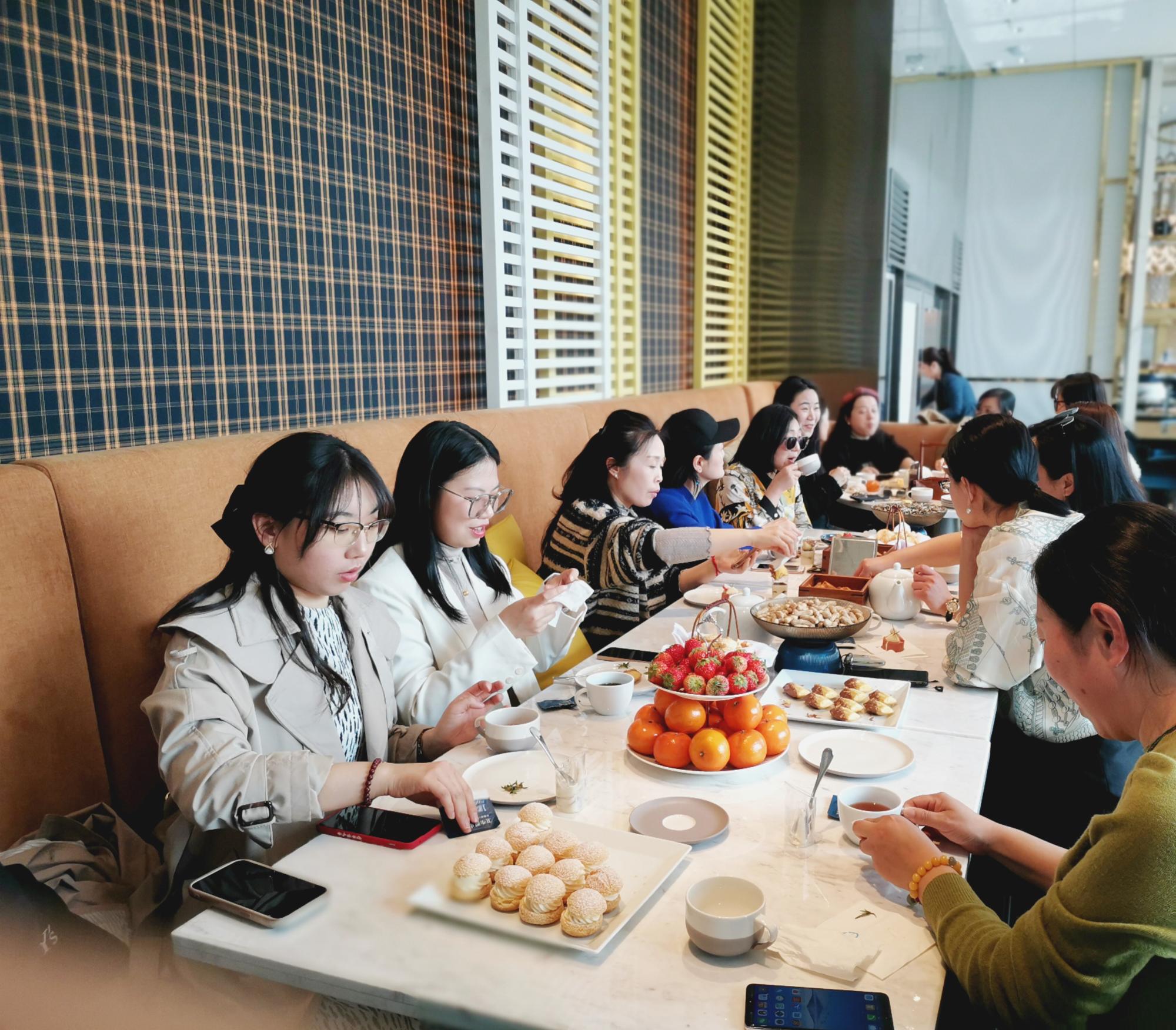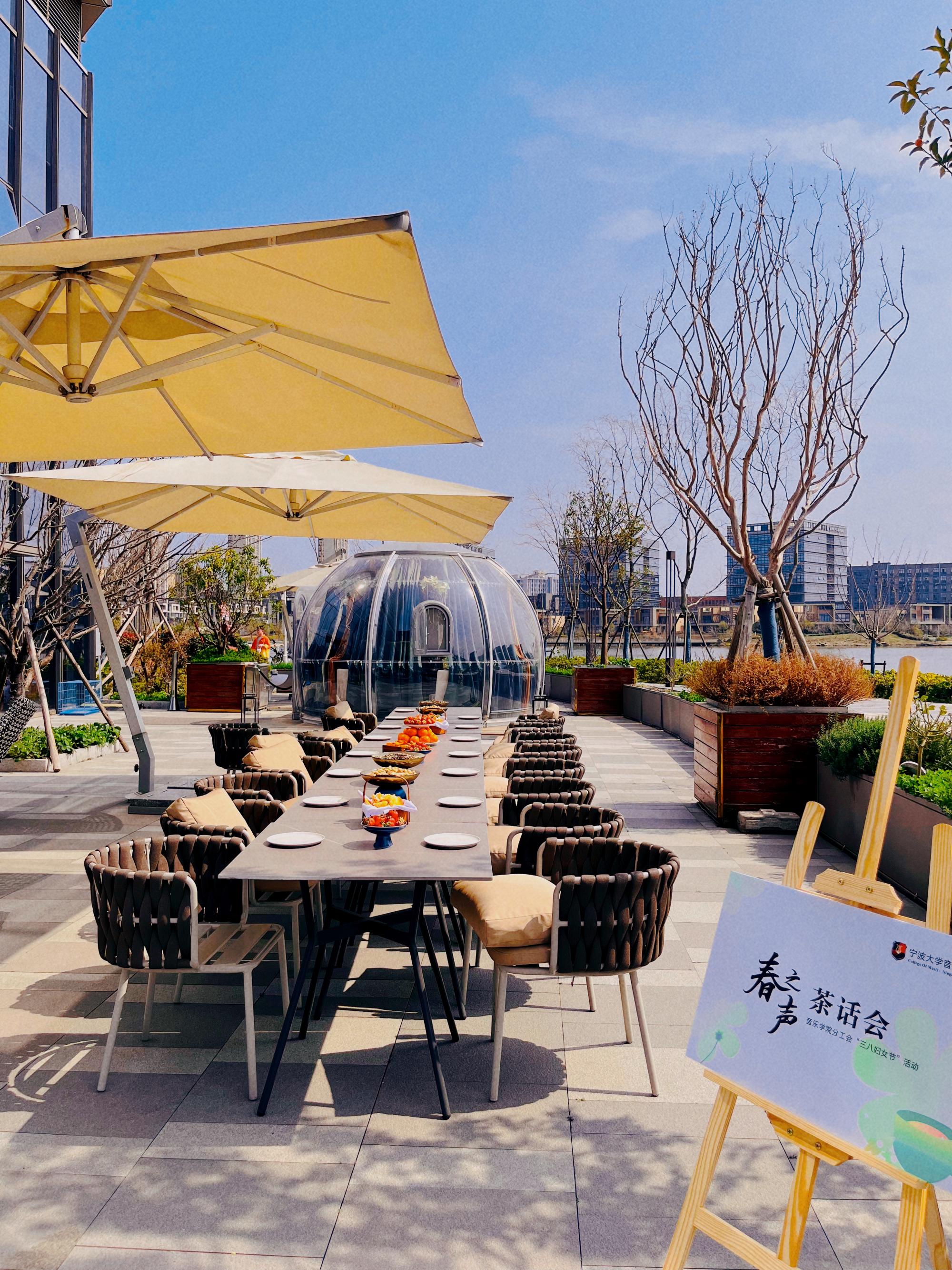 分工会/妇联在宁波湖畔凯越尚萃酒店户外花园举行分工会“春之声”茶话会女工活动。